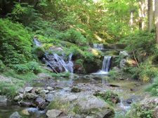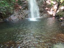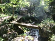 駐車場から徒歩15分ほどにある高低差約60m全4段の滝で