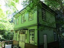 滝に向かう遊歩道にはカフェや古い郵便局を改装した店舗があります。