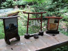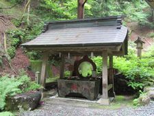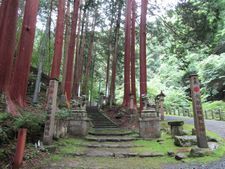 山の中にある神社です。駐車場から約1kmの参道は川沿いを歩いて