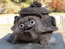 伝説があるそうです。山門間の参道ではたくさんの狸の像が迎えてくれます。