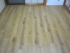 現況クッションフロアーの上に木質フローリングの増張り施工例です。