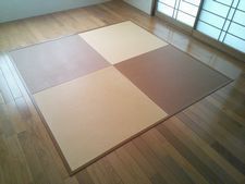 ○畳(和室)からフローリングへ変更の場合、和と洋が混在する時の対応例です。今回は無垢フローリング(サクラ)の中央に畳フロアーを敷き込みました。季節や気分に合わせて入替える事も出来ます。
